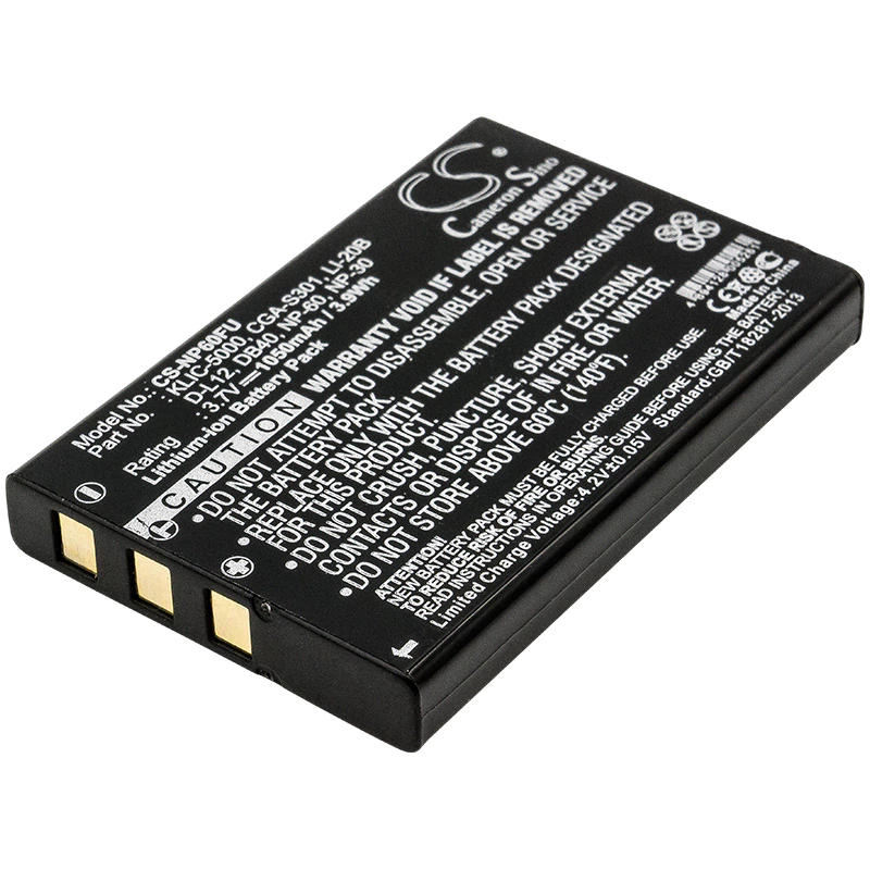 NP-60, NP-30, NP-30DBA, LI-20B, KLIC-5000, FNB-82LI, A1812A, Q2232-8000, CGA-S301, CGA-S302A, CGA-S302A/1B, CGA-S302E/1B, VW-VBA10, VW-VBA20, VW-VBA21, SB-L1037, SB-L1137, 02491-0017-00, LS443, D-LI2, D-LI7, DB-40, DB-43, PDR-BT3, L1812A, LP37, COMA-BP1
