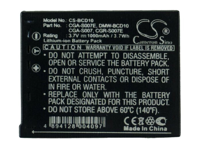 CGA-S007, CGA-S007A/1B, CGA-S007E, CGR-S007E, CGR-S007E/1B, DMW-BCD10, CGA-S007A/B